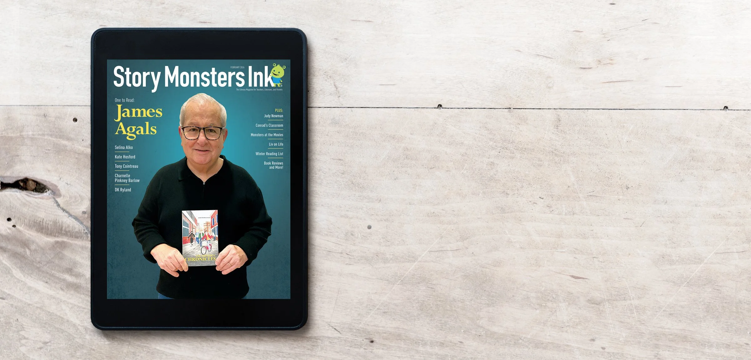 The February issue features author James Agals …